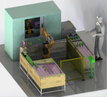 本設(shè)備以工業(yè)機(jī)器人與數(shù)控加工中心為核心,將機(jī)械、氣動(dòng)、運(yùn)動(dòng)控制、有機(jī)地進(jìn)行整合,結(jié)構(gòu)模塊化,使數(shù)控機(jī)床上下料環(huán)節(jié)取代人工完成工件的自動(dòng)裝卸功能,主要適應(yīng)對象為大批量、重復(fù)性強(qiáng)或是工件重量較大以及工作環(huán)境具有高溫、粉塵等惡劣條件情況下使用。具有定位精確、生產(chǎn)質(zhì)量穩(wěn)定、減少機(jī)床及刀具損耗、工作節(jié)拍可調(diào)、運(yùn)行平穩(wěn)可靠、維修方便等特點(diǎn)。為了方便實(shí)訓(xùn)教學(xué),系統(tǒng)進(jìn)行了專門的設(shè)計(jì),可以完成各類機(jī)器人單項(xiàng)訓(xùn)練和綜合性項(xiàng)目訓(xùn)練,可完成各類機(jī)器人單項(xiàng)訓(xùn)練和綜合性項(xiàng)目訓(xùn)練??梢赃M(jìn)行六軸機(jī)器人示教、定位、工件自動(dòng)抓取、上料、下料、裝卡、工件移位翻轉(zhuǎn)、工件轉(zhuǎn)序加工等等訓(xùn)練。